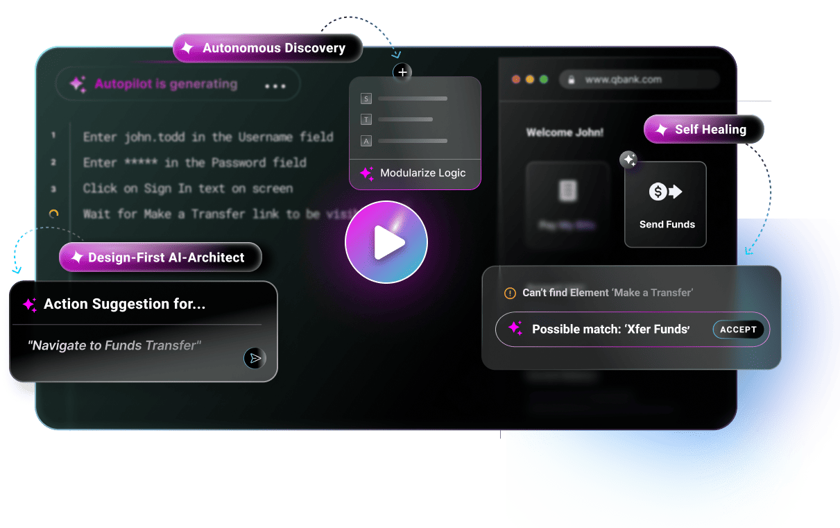 Reduce test maintenance, eliminate flaky scripts, and scale effortlessly with AI – no scripting needed.
