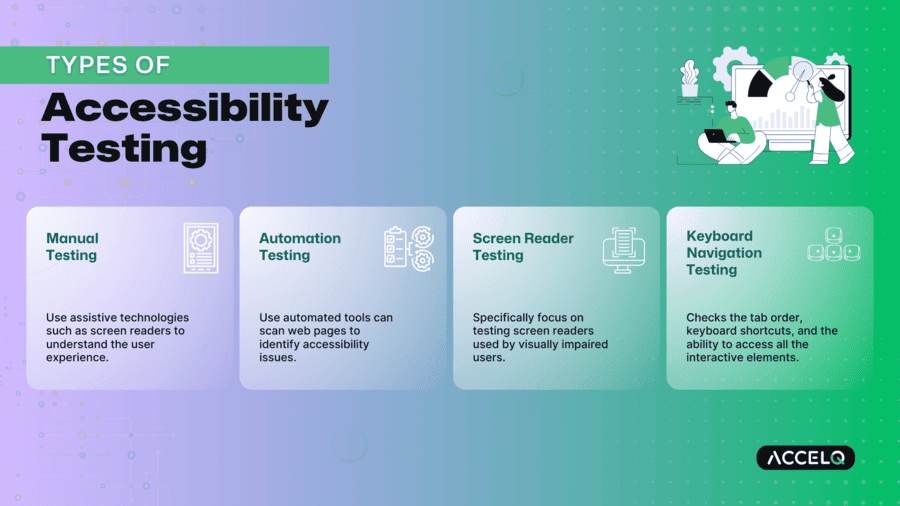 Understanding the different types of accessibility testing helps in implementing a comprehensive testing strategy.