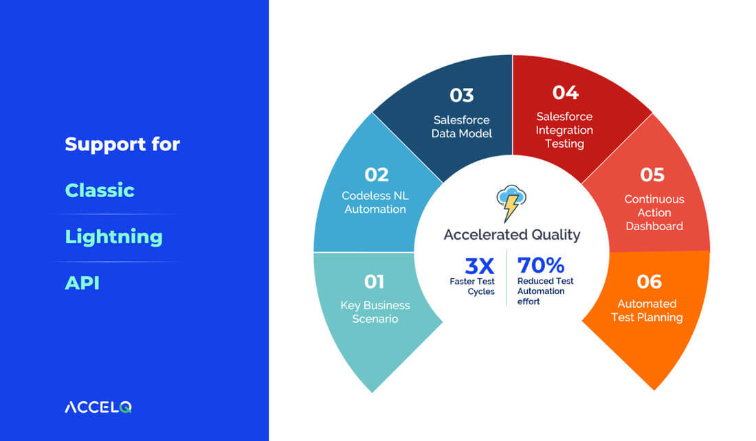 By using the no-code features of ACCELQ, test engineers can build automated workflows for testing types not covered by traditional test automation tools — for example, API test automation, UI test automation, and even continuous testing in DevOps as well as enabling innovations like Salesforce CI/CD seamlessly.