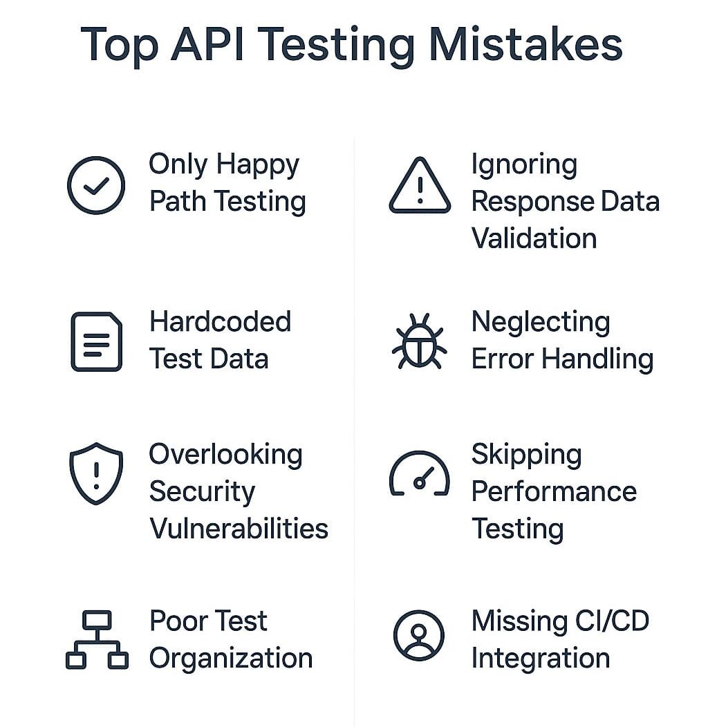 Checking only HTTP status codes while ignoring the actual response content creates a false sense of security. A 200 OK status doesn’t guarantee correct data structure or accurate values. This oversight among common API testing mistakes causes downstream applications to crash when processing malformed responses.