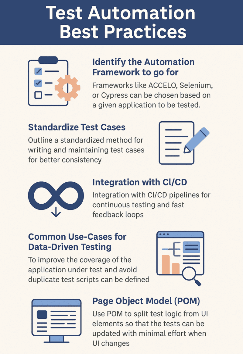 - Standardize Test Cases: Outline a standardized method for writing and maintaining test cases for better consistency.