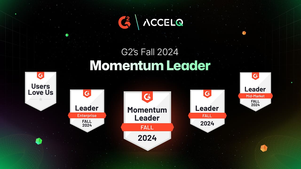 ACCELQ's Fall 2024 Leader badges in various categories indicate a high level of acceptance, customer delight, and popularity of our codeless AI test automation platform in the market. Being recognized as a Momentum Leader stands as a testament to ACCELQ's ascending growth curve in Automated Testing over the last year and identifies us on a high-growth trajectory based on user satisfaction scores, employee growth, and digital presence.